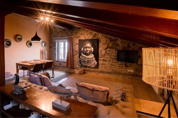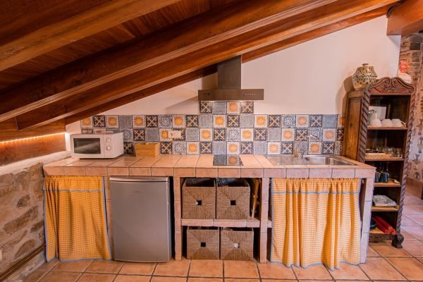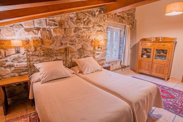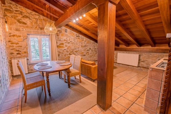 El caserón de piedra restaurado conserva todo su caracter rústico, con las piedras y vigas originales de la casa.
